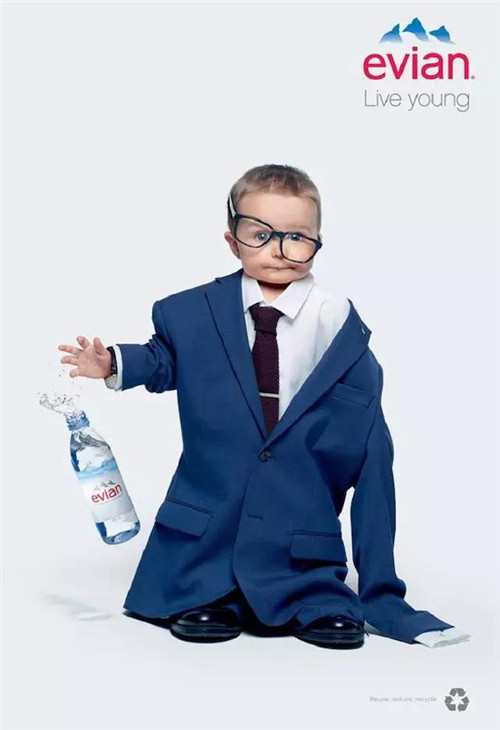 今年依云寶寶的核心創(chuàng)意在于 Oversize,即喝了依云水,就能像嬰兒一樣看待這個世界,在視覺呈現(xiàn)上,它們讓寶寶們穿上超大碼的成人時裝。如果說衣服代表了身份的話,這些穿著時裝造型的寶寶正是依云現(xiàn)在想要吸引的年輕顧客,而用 Evian 的全球營銷總監(jiān) Patricia Oliva 的話說,這些年輕人很可能并沒有看過當(dāng)年的依云寶寶電視廣告。
