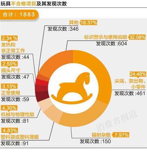 兒童產(chǎn)品的整體不合格發(fā)現(xiàn)率高達(dá)16.6%,美高樂、多喜愛、松堡王國、回力、步步高、青蛙王子、天堂傘等知名品牌均數(shù)次登上黑榜,兒童產(chǎn)品在標(biāo)識(shí)、危險(xiǎn)尖端與零件上存在更多的問題。