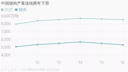 這或許只是個(gè)開(kāi)始,根據(jù)咨詢(xún)公司 Euromonitor 的估算,中國(guó)豬肉銷(xiāo)量從 2014 年的 4249 萬(wàn)噸減少至去年的 4085 萬(wàn)噸,而且今年還會(huì)繼續(xù)下跌。