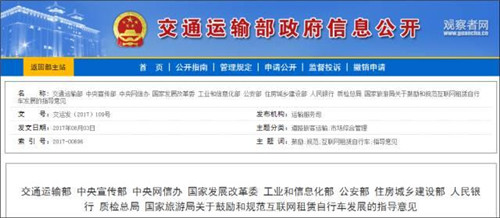 此外,新出臺(tái)的國(guó)家共享單車(chē)管理辦法,也意味著默許發(fā)展的政策紅利期正在成為過(guò)去時(shí)。8月2日,經(jīng)國(guó)務(wù)院同意,交通運(yùn)輸部、中央宣傳部、中央網(wǎng)信辦、國(guó)家發(fā)展改革委、工業(yè)和信息化部、公安部、住房城鄉(xiāng)建設(shè)部、人民銀行、質(zhì)檢總局、國(guó)家旅游局10部門(mén)聯(lián)合出臺(tái)了《關(guān)于鼓勵(lì)和規(guī)范互聯(lián)網(wǎng)租賃自行車(chē)發(fā)展的指導(dǎo)意見(jiàn)》。