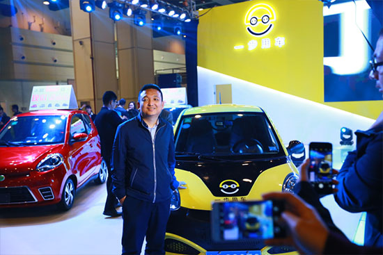據(jù)了解這些黃色的電動汽車全部出自位于新能源展區(qū)T3展位的河南一步用車科技有限公司(以下簡稱一步用車)。