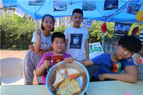 不要以為拿著護(hù)照,在校園里隨意的蹭吃蹭喝蹭表演看,這個(gè)國(guó)際周就算圓滿了。一帶一路“自助游”的路線是這樣的:首先要在教室里,認(rèn)真學(xué)習(xí)和了解“一帶一路”沿線國(guó)家的靜態(tài)文化展示;接著去操場(chǎng)和報(bào)告廳體驗(yàn)國(guó)家的動(dòng)態(tài)文化展示——美食、舞蹈、音樂(lè)等民俗文化;最后去簽證官處“面簽”,想要拿到簽證絕非易事,還得回答“簽證官”提問(wèn)的問(wèn)題,如“看我們的國(guó)旗,我們是哪個(gè)國(guó)家的?”“我們國(guó)家什么最著名呀?”等問(wèn)題,而問(wèn)題的答案,都在孩子們精心準(zhǔn)備的文化展板里。如果你被簽證官“拒簽”,那么請(qǐng)你再去學(xué)習(xí)深造一下。你瞧,孩子們可不覺(jué)得這是一場(chǎng)游戲,而是把這看出是一堂課程、一次學(xué)習(xí),一次檢驗(yàn)自己知識(shí)儲(chǔ)備的考試。當(dāng)孩子們集齊所有國(guó)家的簽證,那么學(xué)校會(huì)有神秘的兒童節(jié)禮物獎(jiǎng)勵(lì)你。
