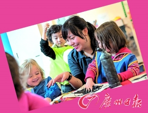 日托中心還為每位學(xué)生準(zhǔn)備了專屬于自己的英文老師與一名中文老師,基本的教學(xué)方式是“一位老師用英文和孩子玩游戲、唱歌、說話,另一位老師用中文重復(fù)”。這種二對一的教學(xué)方式獲得了不少英國父母的認(rèn)同。
