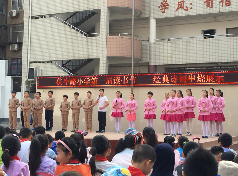 在誦讀比賽中,伴著優(yōu)美的音樂,孩子們根據(jù)對詩詞的理解和感悟,或慷慨激昂,或舒緩?fù)褶D(zhuǎn),富有情感的朗誦讓大家深深陶醉。五年級的《論語》、《大學(xué)》、“瘋狂背古詩”,時(shí)而儒雅溫婉時(shí)而激情四射;四年級的十言詩串燒、全年級齊背現(xiàn)代詩《我微笑著走向生活》,道出了學(xué)生對生活的熱愛與贊美,滿滿的正能量在伏牛的校園中傳遞。