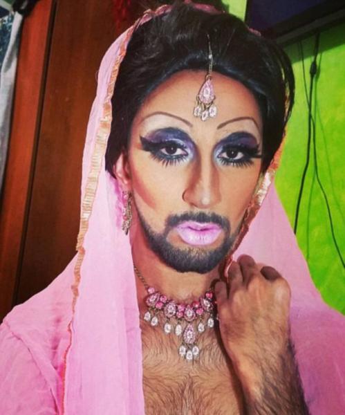 來自澳大利亞布里斯班的“變裝皇后”伯恩(Shaniqua T Bone)從2015年起留起了大胡子。美國“變裝皇后”拉西(MangHoe Lassi)也對(duì)胡子和變裝情有獨(dú)鐘。因?yàn)閾碛杏《妊y(tǒng),所以他的變裝中加入了很多印度服裝元素。另外一名“變裝皇后”朱爾(Fancy Drew)則在網(wǎng)上分享了他從一個(gè)正常男子變身女兒身的過程。