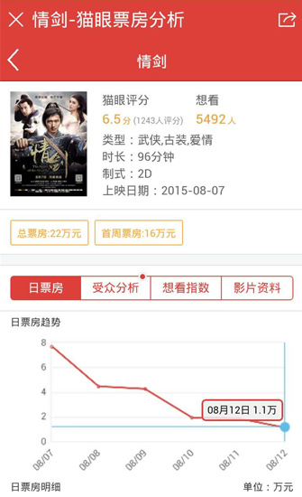 《情劍》預(yù)計票房8000萬最終22萬