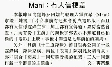 港媒采訪阿嬌經(jīng)紀人霍汶希有關(guān)《情劍》的報道