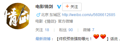 擁有龐大粉絲群體的《情劍》官微