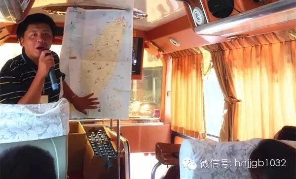 在大巴上,導(dǎo)游阿賢介紹這次環(huán)島之旅的行程。
