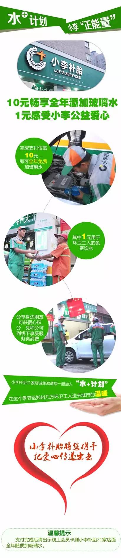 水+計(jì)劃 河南經(jīng)濟(jì)廣播 小李補(bǔ)胎“愛心公益在行動(dòng)”10元暢享全年添加玻璃水