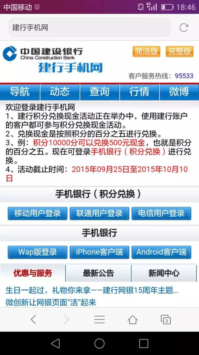 一萬積分兌換500元,簡直是天上掉現金的感覺,于是便有市民心動了,點擊了短信中的鏈接。這時,手機跳轉到了一個上網界面,顯示是“建行手機網”。