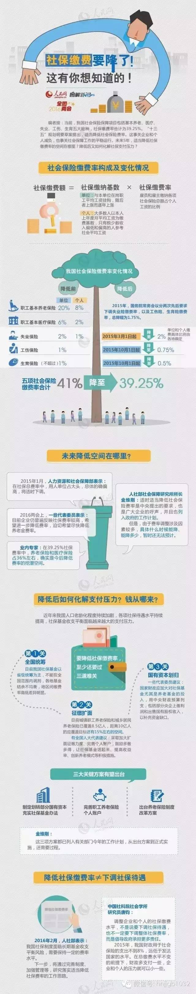 當前,我國社保包括基本養(yǎng)老、醫(yī)療、失業(yè)、工傷、生育五大險種,繳費率合計為39.25%。適當降低社保繳費率的空間在哪里?降低后如何化解社保支付壓力?如圖——