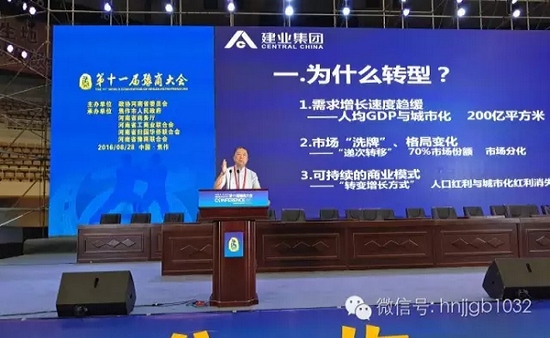 在主題論壇上,建業(yè)住宅集團(tuán)(中國)有限公司董事局主席、嵩山資本創(chuàng)始人胡葆森以建業(yè)為例,談到河南房地產(chǎn)企業(yè)的轉(zhuǎn)型。他認(rèn)為,隨著人們需求增長速度的放緩以及市場的不斷分化,房地產(chǎn)市場也在進(jìn)行著洗牌、競爭格局發(fā)生變化。
