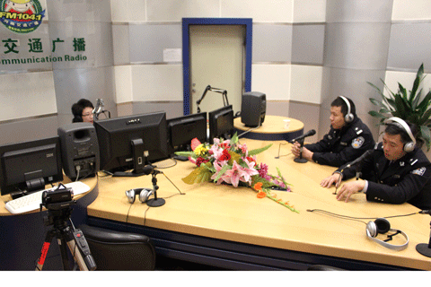 12月10號,鄭州交警支隊科研所警官李輝、周洪亮做客河南交通廣播《文明交通在行動--交廣聯(lián)播網(wǎng)》節(jié)目,介紹電子警察、視頻監(jiān)控等非現(xiàn)場執(zhí)法設(shè)備在促進(jìn)文明交通行為方面所起的作用