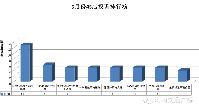 應(yīng)廣大聽眾要求,本次排行榜首次公布了汽車4S店投訴排行,分別是:長安汽車河南大河車城、東風(fēng)標致河南恒獅4S店、五菱汽車鄭州市豫北機電、一汽奧迪河南豫海4S店、菲亞特河南凡迪4S店、東風(fēng)本田河南錦鴻4S店、奇瑞汽車河南中值4S店、東風(fēng)標致河南鼎星4S店。