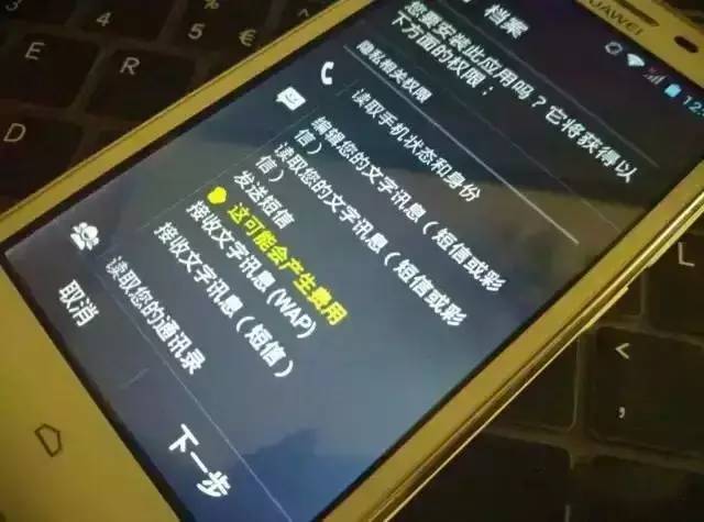 可以看到這個app偽裝的很好,名字就叫做“檔案”,細(xì)心的朋友會發(fā)現(xiàn),這個app還需要讀取手機(jī)身份以及短信甚至是通訊錄!一般的app都沒有這些權(quán)限需求的,顯然這是一個木馬病毒,記者就沒有繼續(xù)進(jìn)行下一步了。