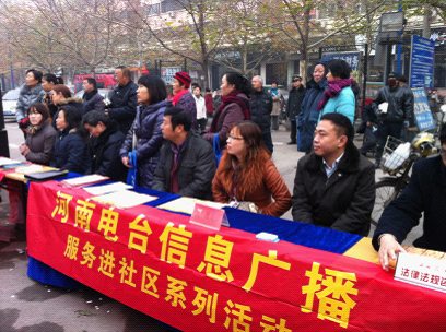 2011年12月2日(全國法制宣傳日前夕)河南人民廣播電臺信息廣播聯(lián)合建中街道辦事處在碧波園舉行了法制服務(wù)進(jìn)社區(qū)活動?;顒俞槍θ嗣袢罕婈P(guān)心的生活問題、需要法治解決的現(xiàn)實(shí)問題,從情理、道理、法理以及憲法、法律、法規(guī)等等方面給予指導(dǎo),通過答問題之疑、解法律之惑,真正為人民群眾排憂解難。使法制宣傳教育深入人心,認(rèn)同法治精神,接受法治理念,共創(chuàng)和諧社會。