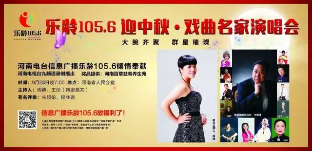 河南電臺(tái)信息廣播樂齡105.6傾情奉獻(xiàn)《樂齡1056迎中秋戲曲名家演唱會(huì)》將于9月23日晚19:00在河南省人民會(huì)堂激情開唱!