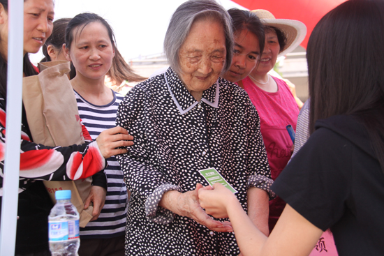 老奶奶領(lǐng)到健康體檢卡很開(kāi)心