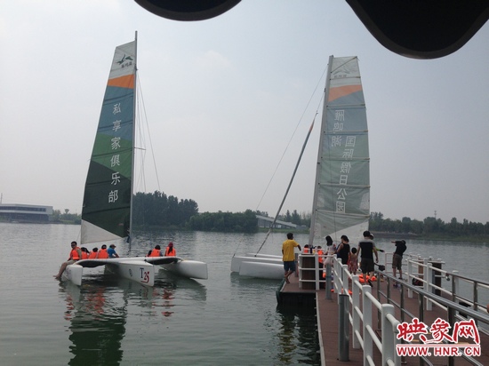 映象網(wǎng)訊 (記者 殷清卉)提起帆船,大家一般想起在大海里暢游的感覺,但是現(xiàn)在在我們鄭州也可以玩帆船了,7月27日,來自全省各地的300多名幸運聽眾,便在河南電臺信息廣播《房產(chǎn)江湖》節(jié)目組的帶領(lǐng)下,在雁鳴湖國際假日公園過了一把帆船癮。
