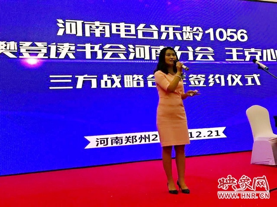 在河南電臺(tái)樂(lè)齡1056“說(shuō)說(shuō)心理話(huà)”主持人文聰?shù)闹鞒窒拢幽想娕_(tái)信息廣播總監(jiān)助理沈建波、樊登讀書(shū)會(huì)河南分會(huì)會(huì)長(zhǎng)程海濤、王克心理創(chuàng)始人王克共同簽約了三方合作協(xié)議。