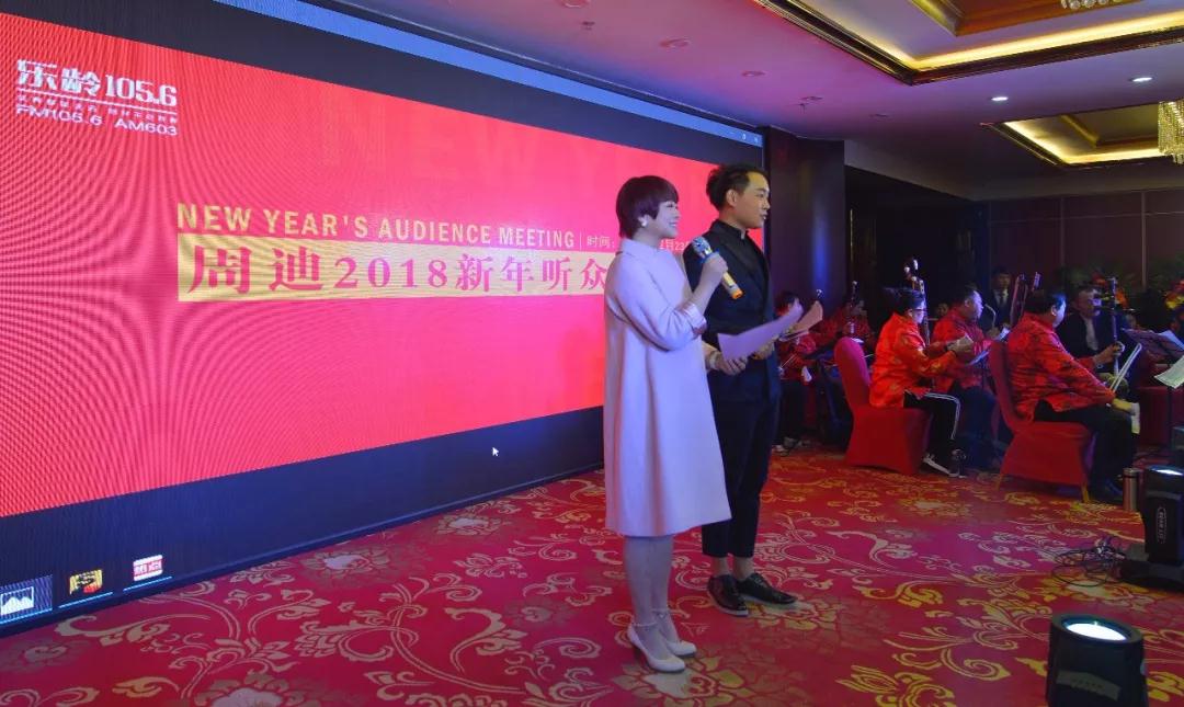 “我們的女神叫小周,美麗大方人優(yōu)秀。百萬(wàn)戲迷手挽手,你主持的節(jié)目愛(ài)不夠,讓我們舉起歡慶的美酒,祝節(jié)目越辦越好與時(shí)俱進(jìn)競(jìng)風(fēng)流……”伴隨著聽(tīng)眾張學(xué)紅原創(chuàng)戲歌《我們的女神》,周迪2018新年聽(tīng)眾見(jiàn)面會(huì)正式拉開(kāi)帷幕。