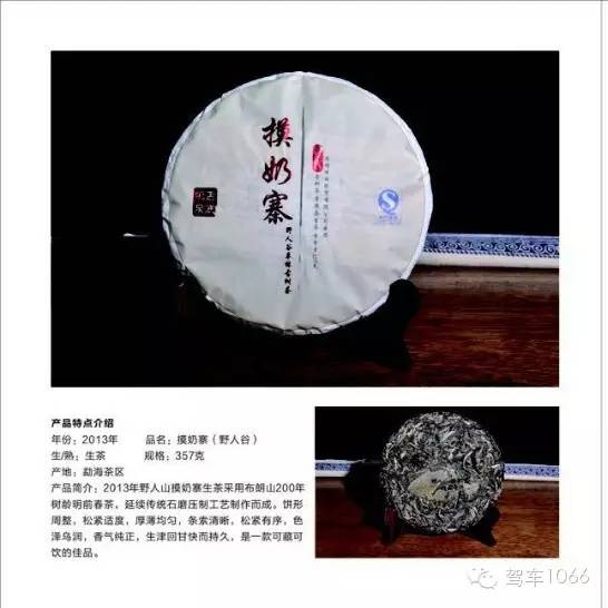 2013年,野人山摸奶寨生茶采用布朗山200年以上樹齡明前春茶,延續(xù)傳統(tǒng)石磨壓制工藝制作而成。餅形周整,松緊適度,厚薄均勻,條索清晰,松緊有序,色澤烏潤,香氣純正,生津回甘快而持久是一款可藏可飲的佳品。