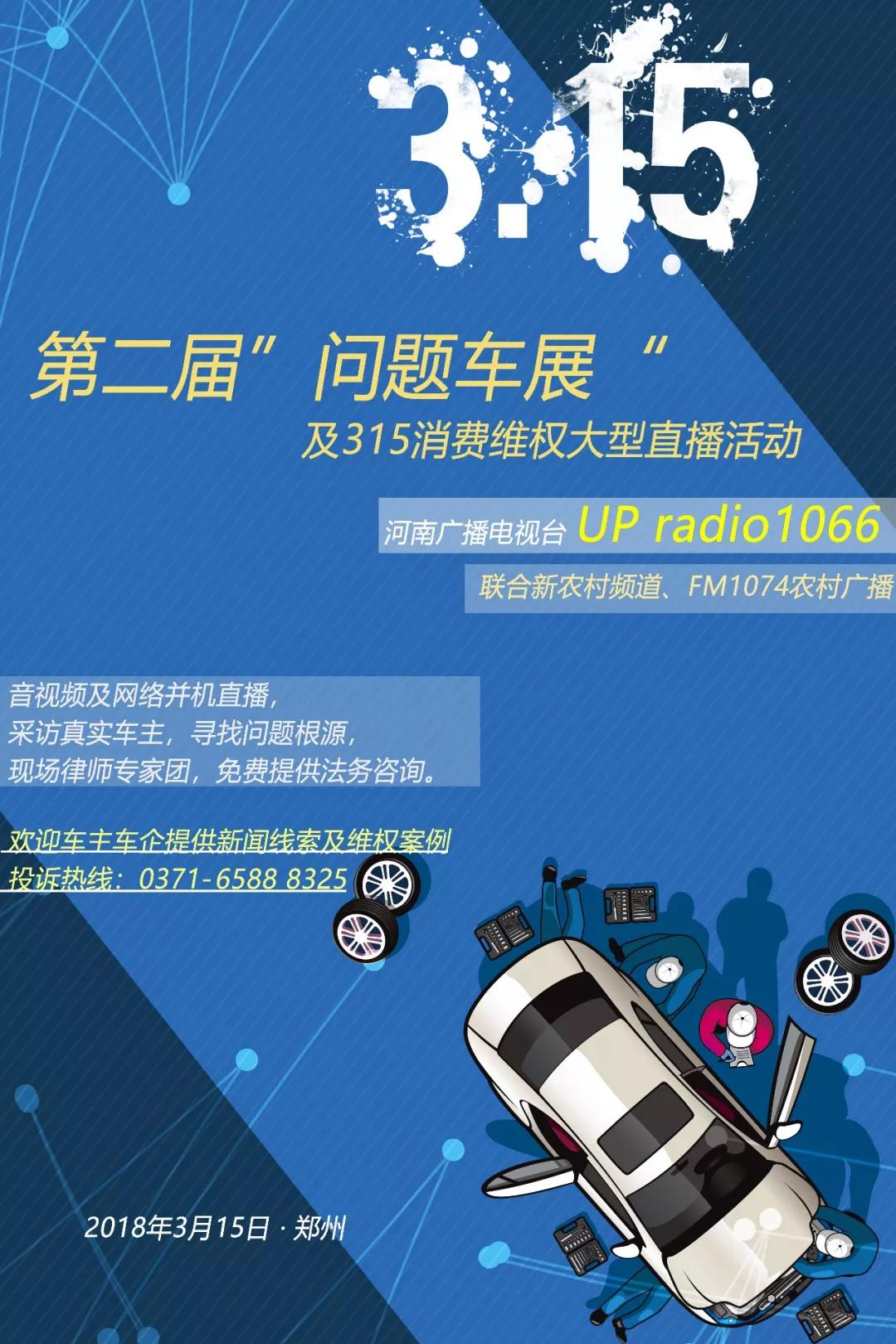 2、關(guān)注UP Radio 1066微信公眾號(hào)發(fā)送“315問(wèn)題車展+姓名+聯(lián)系方式+車型+故障簡(jiǎn)述”至微信后臺(tái)報(bào)名。