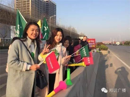 河南電臺1074綠色頻道的忠實(shí)粉絲單位也紛紛前來為選手們助威!