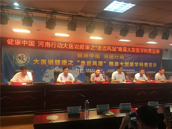 07月23日上午,由河南省衛(wèi)計委宣傳處指導,河南省醫(yī)學科普學會、醫(yī)藥衛(wèi)生報主辦的“健康中國 河南行動 大醫(yī)說健康”開啟第二站:“走進風濕”睢縣大型醫(yī)學科普宣講義診活動。