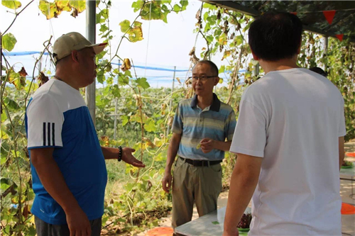河南電臺綠色頻道副總監(jiān)寒江帶隊(duì),河南田緣興生態(tài)農(nóng)業(yè)董事長楊國軍向我們介紹葡萄采摘基地的葡萄品種,并邀請大家品嘗。