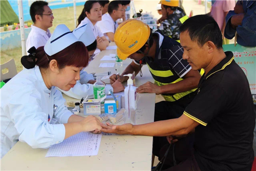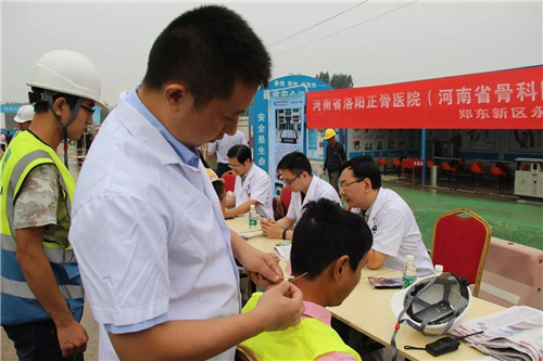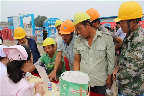 一大早,五大醫(yī)院的白衣天使們,就來(lái)到了中建三局鄭州航空港棚戶區(qū)改造的施工現(xiàn)場(chǎng)。開(kāi)始準(zhǔn)備工作,希望能夠更好地為建筑工人們做健康檢查。
