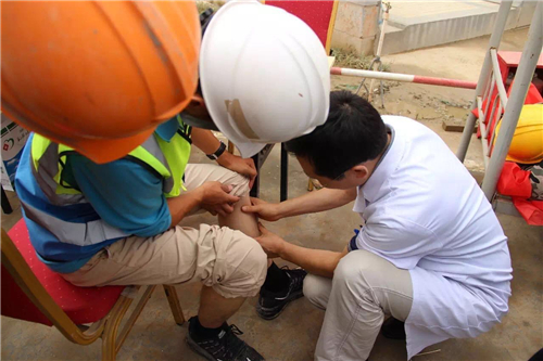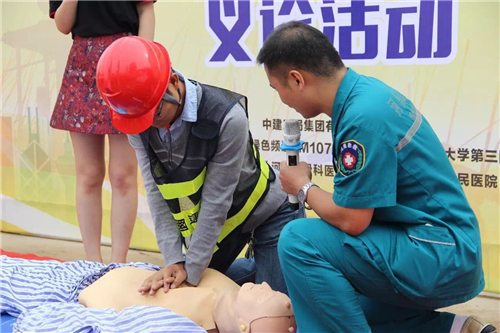 醫(yī)生們一邊操作,一邊講解,工人們有不明白的,還可以現(xiàn)場(chǎng)提問(wèn)。幾乎每一位認(rèn)真學(xué)習(xí)的建筑工人都想一試身手,醫(yī)生則在一旁一對(duì)一指導(dǎo)。