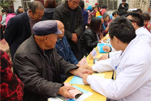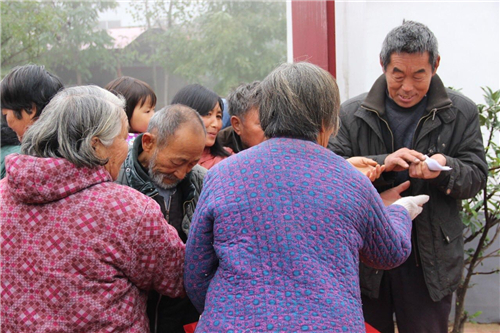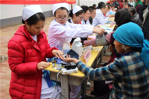 雖然廣場上寒意襲人,但大家的內(nèi)心卻熱情高漲,現(xiàn)場的專家為老鄉(xiāng)免費測血糖、量血壓、發(fā)放健康教育資料,免費提供疾病知識的咨詢,忙得不亦樂乎。