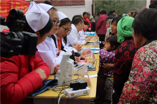 測血壓、血糖的老鄉(xiāng)最多!一上午可把這兩位美麗的白衣天使忙壞了,但他們一句怨言也沒有。