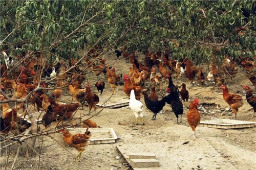 盡管上串下跳的柴雞和甘蔗林不能和睦相處,但是和桃樹林還是很搭,柴雞們經(jīng)常會(huì)臥到桃樹上休息。