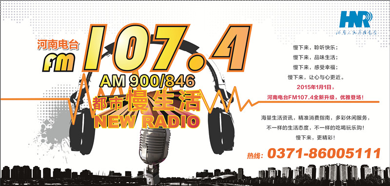 2015年1月1日,河南電臺FM107.4慢生活NewRadio全新升級,優(yōu)雅登場!海量生活資訊,精準(zhǔn)消費(fèi)指南,多彩休閑服務(wù),不一樣的生活態(tài)度,不一樣的吃喝玩樂購!慢下來,我的“心”常態(tài)!河南電臺1074慢生活NewRadio(FM107.4 AM900/846)。