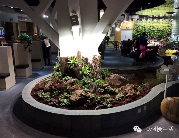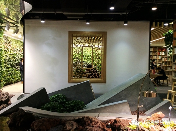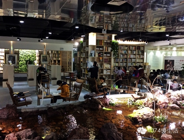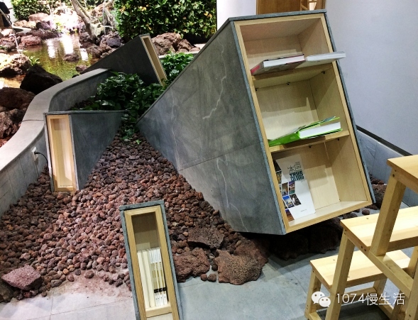書店中央是一個(gè)溪流造型的活水小池