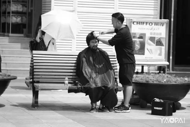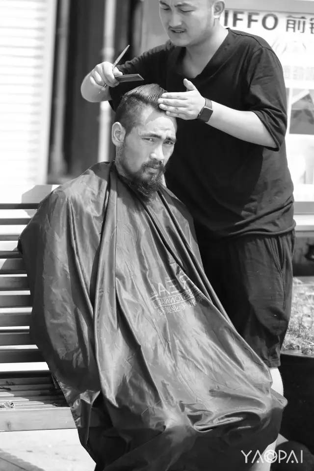 見到他,是在烈日下的二七廣場(chǎng),話不多,不好意思的接過了我們遞去的一瓶水。想了想,接受了紅濤提出為他免費(fèi)理發(fā)的想法。