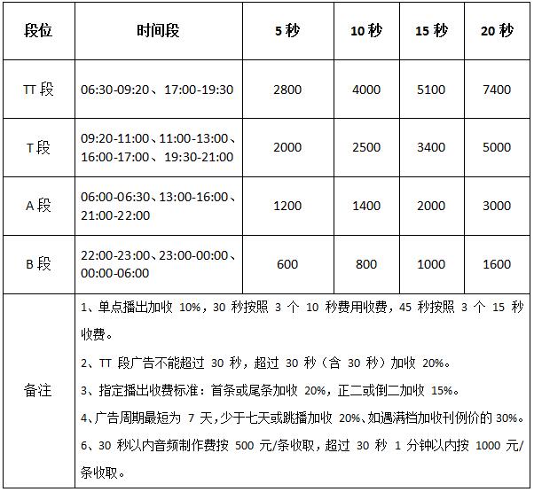 標(biāo)準(zhǔn)廣告刊例
