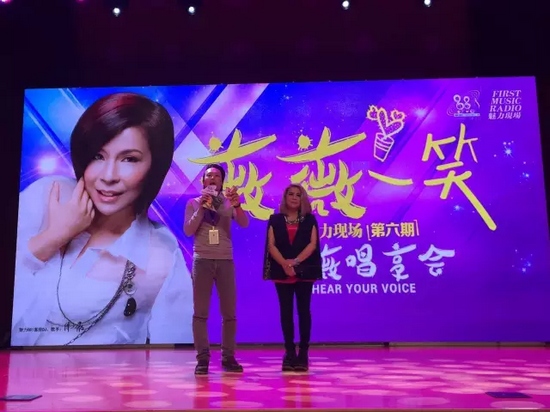 唱享會(huì)還未開始傅薇已經(jīng)在現(xiàn)場(chǎng)彩排了