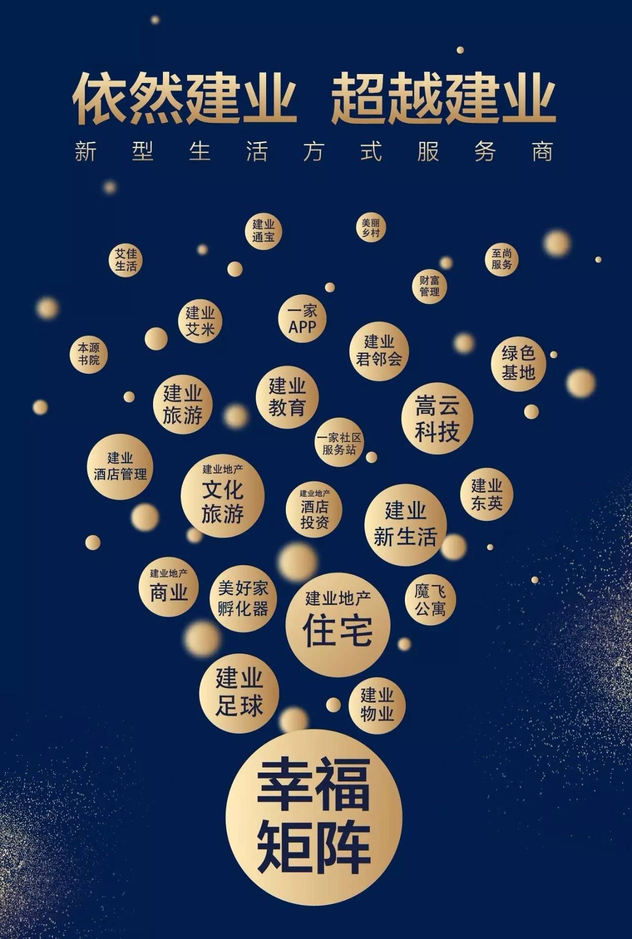 在消費(fèi)升級(jí)、需求多元及互聯(lián)網(wǎng)普及等大背景下,遵循市場(chǎng)變化及客戶(hù)需求積極轉(zhuǎn)型,建業(yè)集團(tuán)于2015年正式開(kāi)啟由“房地產(chǎn)開(kāi)發(fā)商”向“新型生活方式服務(wù)商”戰(zhàn)略轉(zhuǎn)型。深度思考“建業(yè)+地產(chǎn)、+文化、+旅游、+農(nóng)業(yè)、+商業(yè)、+教育、+體育、+酒店、+科技、+金融”的大商業(yè)生態(tài)發(fā)展之道。