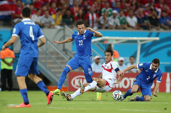 北京時(shí)間6月30日4時(shí),世界杯1/8決賽第4場在累西腓伯南布哥球場展開較量,哥斯達(dá)黎加120分鐘與希臘戰(zhàn)為1比1,點(diǎn)球決戰(zhàn)5比3勝出,首次打進(jìn)世界杯8強(qiáng),也成為2002年美國之后首進(jìn)8強(qiáng)的中北美洲球隊(duì),將與荷蘭爭奪半決賽席位。下半場,哥斯達(dá)黎加隊(duì)長魯伊斯打破僵局,但中衛(wèi)杜阿爾特此后兩黃下場。補(bǔ)時(shí)階段,帕帕斯塔索普洛斯扳平比分。點(diǎn)球戰(zhàn),哥斯達(dá)黎加門將納瓦斯撲出耶卡斯點(diǎn)球。 【詳情】