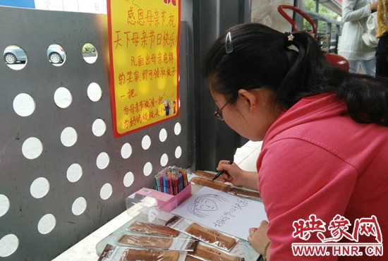 映象網(wǎng)快訊(記者 何葉 文/圖)昨天(5月14日)是母親節(jié),在金水路快速公交站臺(tái)內(nèi),別樣的慶祝母親節(jié)活動(dòng)正在進(jìn)行著,凡是在站臺(tái)內(nèi)畫(huà)出母親慈祥笑容的乘客,都能獲得梳子一把,為辛勞的母親梳梳頭。