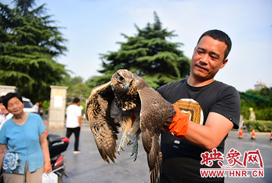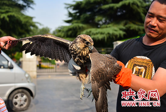 映象網(wǎng)快訊(記者 邱延波 文/圖)獵隼,大型猛禽,國家二級重點保護(hù)動物。6月15日,中牟一農(nóng)民竟然在蒜地里發(fā)現(xiàn)一只受傷的獵隼。