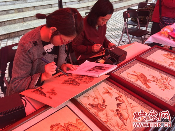 非物質(zhì)文化遺產(chǎn)傳人現(xiàn)場(chǎng)烙畫,每副畫需要兩天方可完成