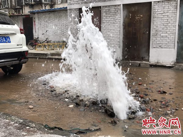 居民宋女士說,自家就住在19號樓5樓,一大早不到7點就聽見樓下有嘩嘩的響聲。她想著是起大風了結果往樓下一看,竟然是自來水管爆管了,就急忙撥打供水熱線67680000搶險,結果一直占線打不通。