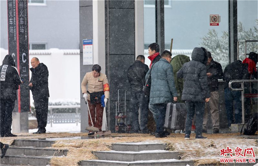 今天白天,全省陰天有小到中雪,其中黃河以南和濟源、焦作兩地區(qū)及新鄉(xiāng)地區(qū)西部部分地區(qū)有大雪,局部暴雪,淮河以南大部分地區(qū)有雨夾雪。