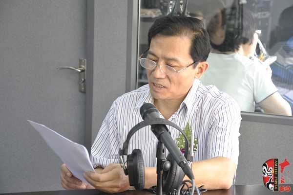 河南電臺(tái)戲曲廣播《戲迷樂》、《票友排行榜》主持人王博(左)在本次活動(dòng)戶外直播間