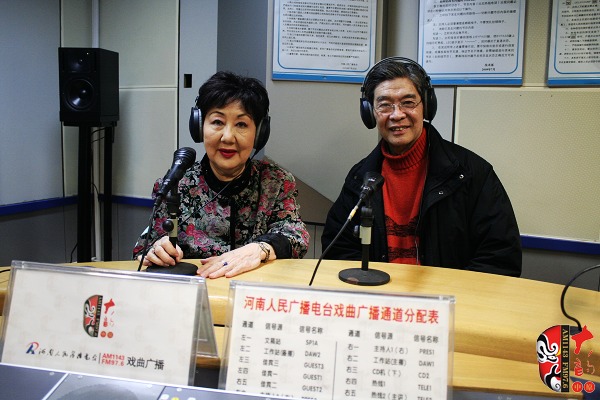 河南人民廣播電臺副臺長翟國選(左)親自接見京劇荀派傳人孫毓敏(右)